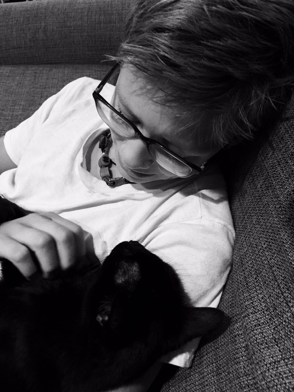 Oh, that cat. I made no mystery of my disdain of him for 18 years. So, Friday at 5:00, when it was time to say our final good-byes, I was a little surprised by my emotional response to letting him go. Our 12 year old wanted to be with him. I wasn’t going to go. I changed my mind the day of. 12 cried from the depths of his enormous heart. It was so difficult to watch.